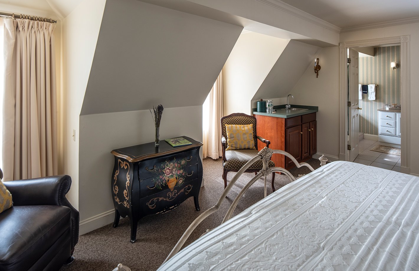 Discover the delightful charm of this top-floor room, where the gas fireplace, flat-screen TV, and restful recliner come together to create a haven of relaxation. The Mt. Clay room is the perfect spot to kick back and indulge in leisurely moments.