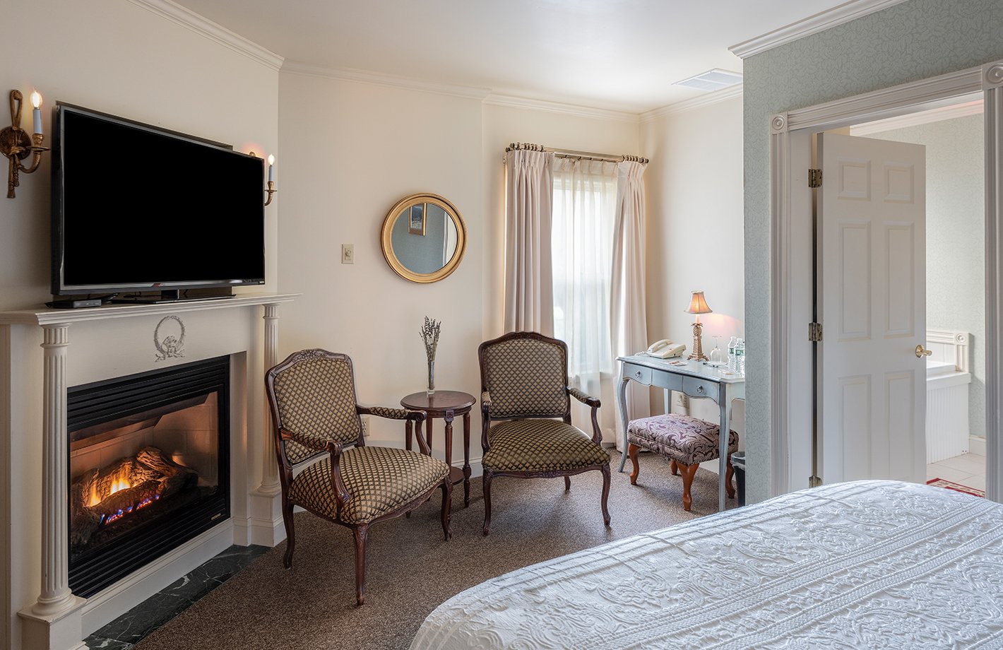 In this inviting second-floor room, boasting a captivating forest view, you’ll unwind and recharge in the comfort of a queen-sized bed. Enhance the cozy ambiance with a gas fireplace, providing both warmth and a touch of elegance to the space.